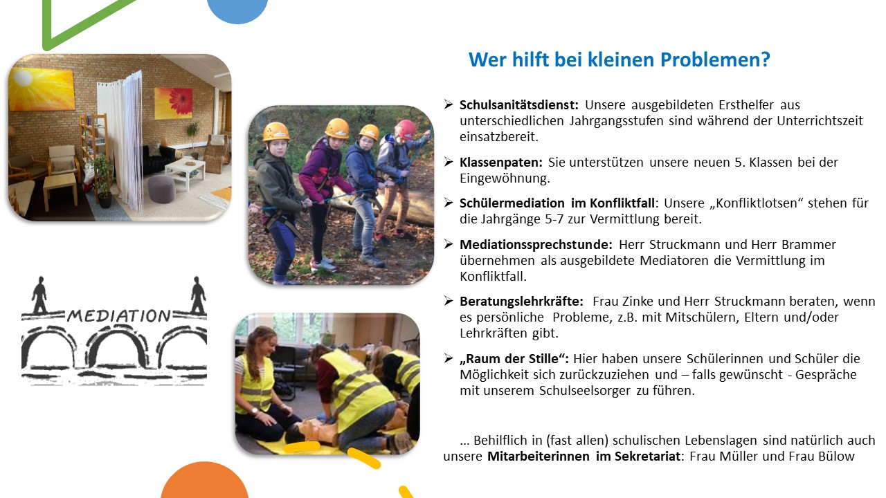 Für individuelle Informationen zum Übergang von der Grundschule auf die weiterführende Schule sowie zu den Jahrgängen 5 und 6 wenden Sie sich bitte an die stellvertretende Schulleiterin, Frau StD‘ Dr. Begemann.
