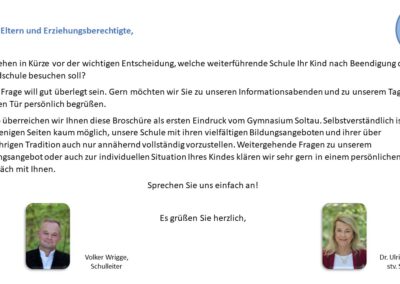 Liebe Schülerinnen und Schüler, liebe Eltern und Erziehungsberechtigte,
